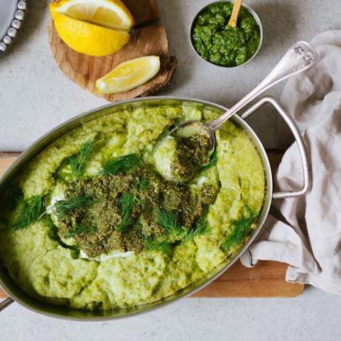 Fiskgratäng med dillpesto - en fräsch och god rätt som går snabb att laga!