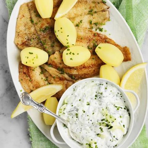 Ett läckert och mumsigt middagsrecept på stekt spätta med gurkfil, en husmansklassiker med en twist. Här är det gurkfilen som gör det lilla extra, men utan att avancera! Riv gurkan grovt, hacka gräslöken och blanda med gräddfil. Färdigt! Servera med nystekt spätta och kokt potatis.