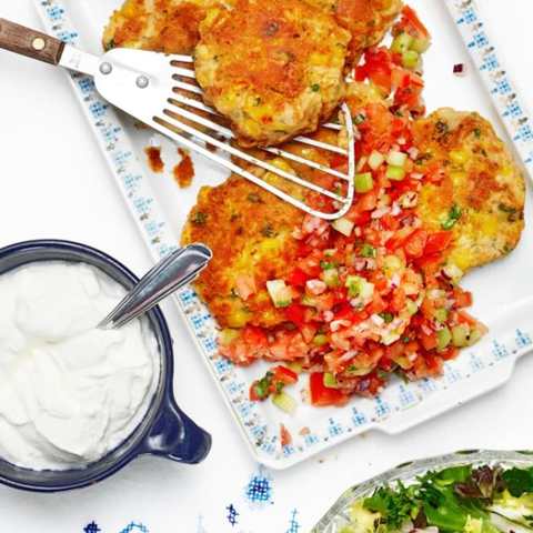 Ärtiga majsbiffar med tomatsalsa