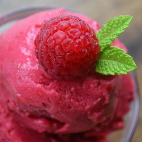 En enkel dessert med massor av variantionsmöjligheter. Byt hallonen mot dina favoritbär. Fyll frysen under bärsäsongen så räcker det hela vintern.