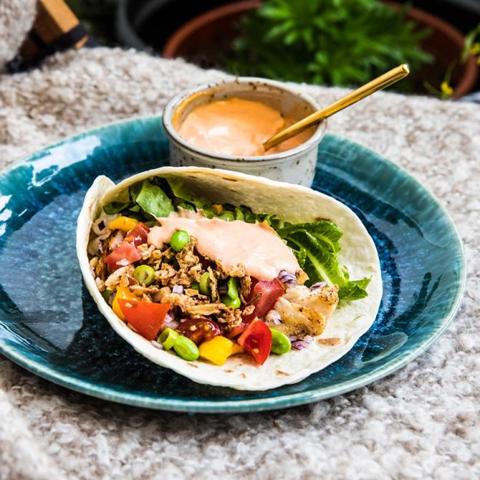 - Servera allt i värmda tortilla med sallad och rostad lök.